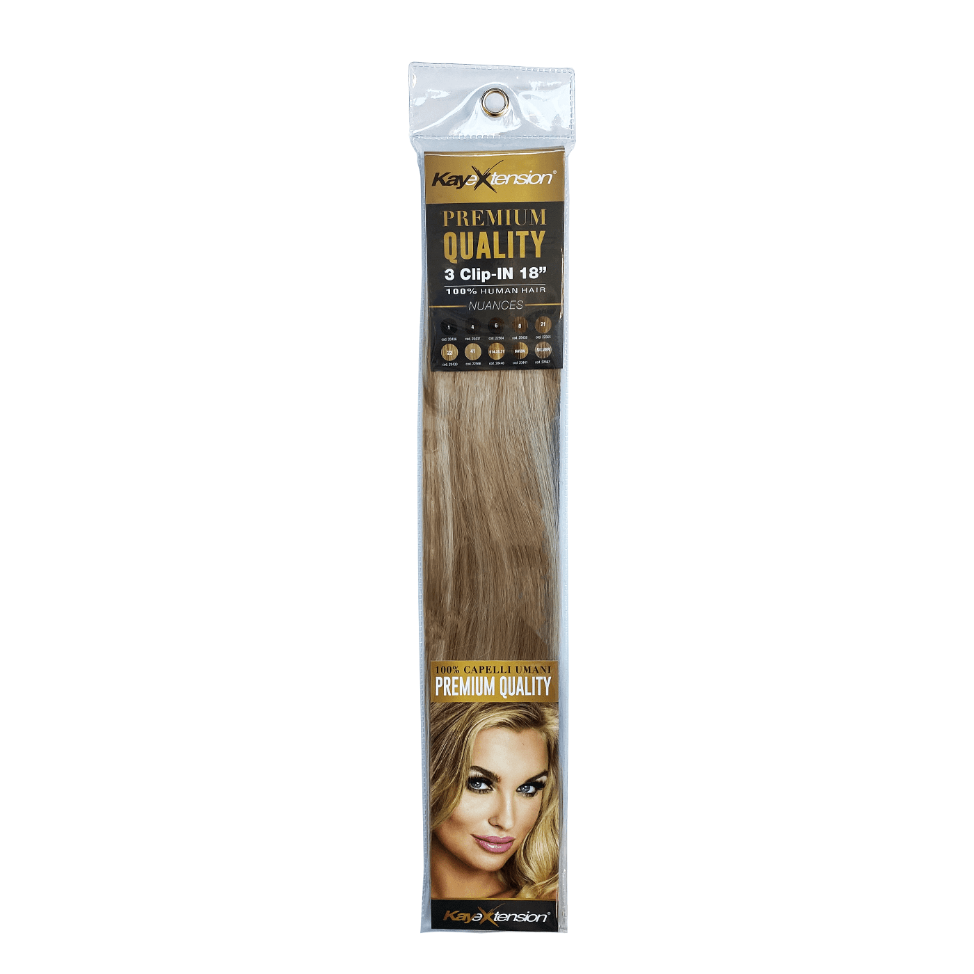 • Il sistema KAY EXTENSION CLIP- IN (18 ) con larghezze differenti  per aggiungere diversi volumi e lunghezze al proprio styling.
