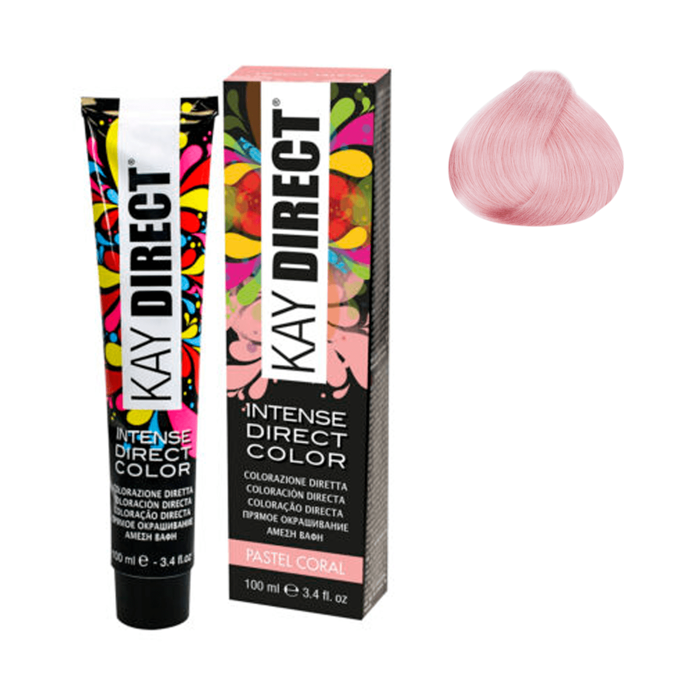 KAYDIRECT INTENSE DIRECT COLOR – PASTEL CORAL MODO D’USO: Applicare il prodotto direttamente su radici, lunghezze e punte lasciare in posa 20/40 minuti in base al potere assorbente del capello, quindi sciacquare delicatamente i capelli senza utilizzare shampoo.