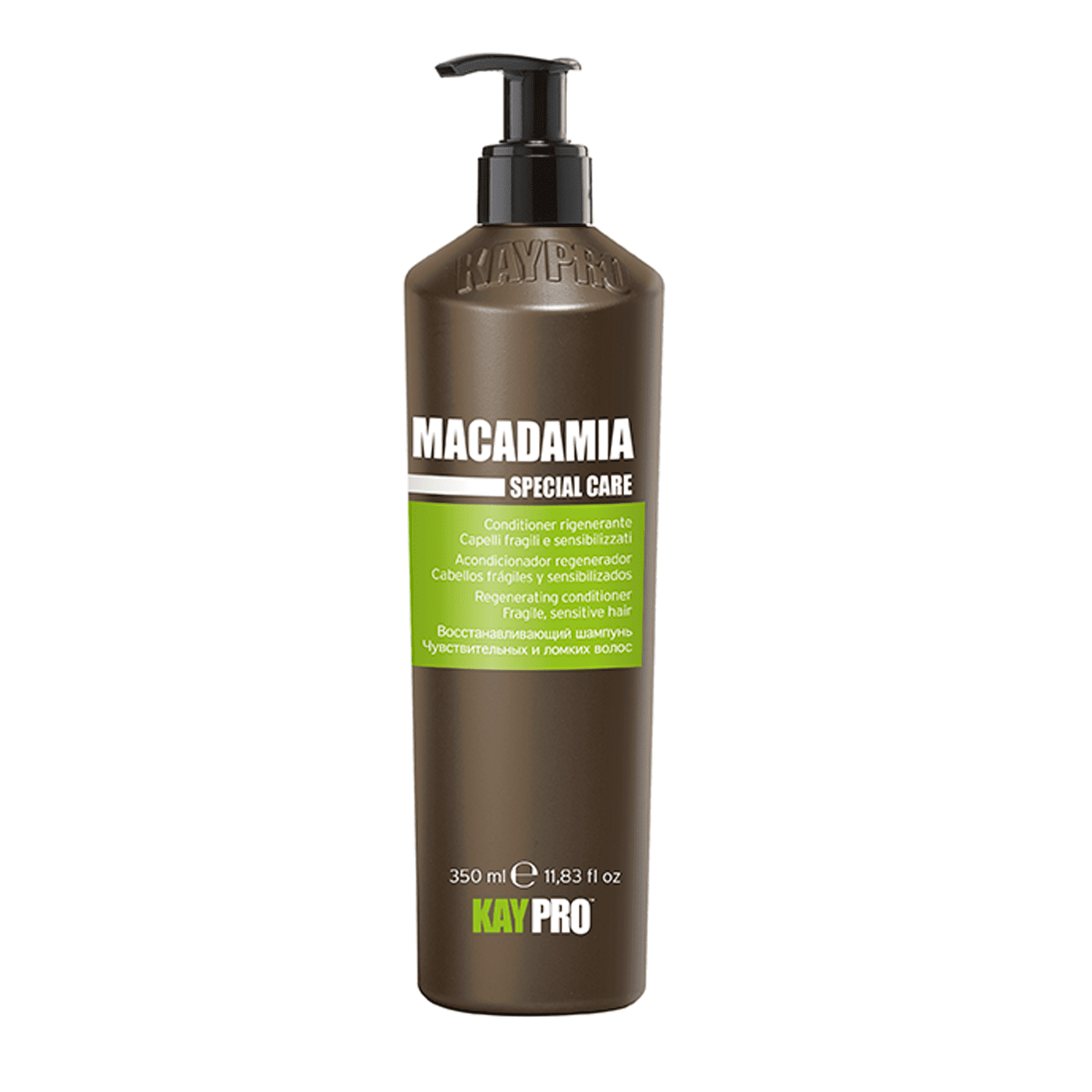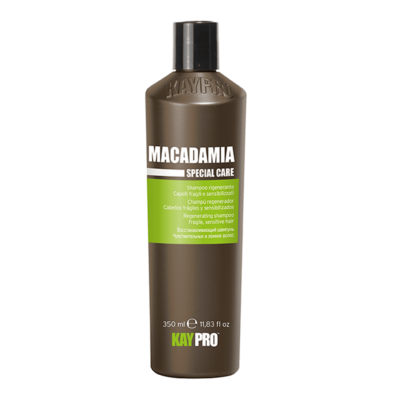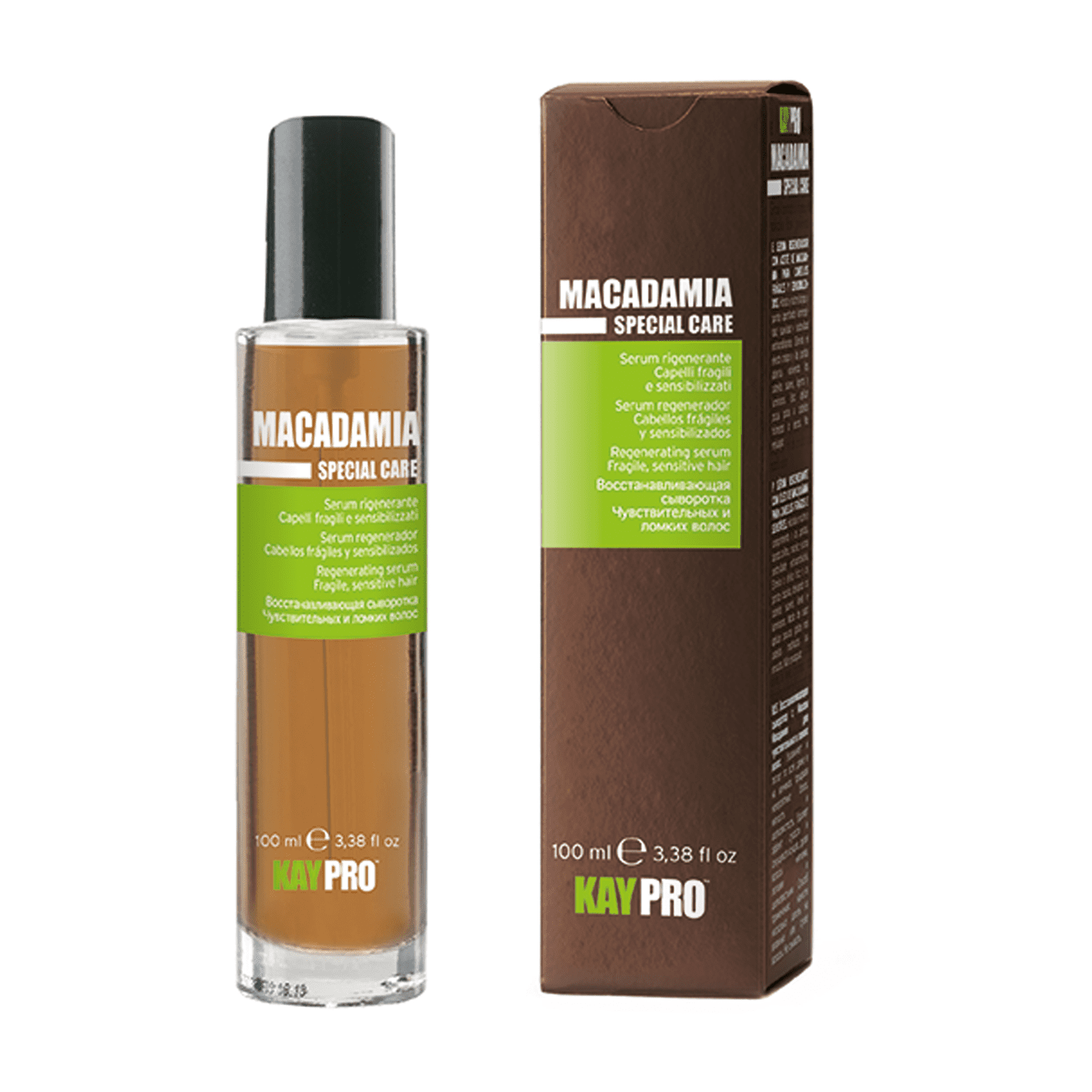 L’azione sinergica di antiossidanti e olio di macadamia rinforzano il capello e lo nutrono in profondità.